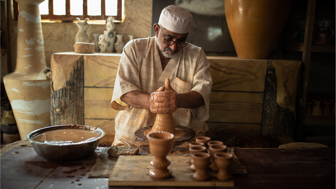 تجربة حرفية أصيلة تأخذ المشاركين في رحلة فنية إلى عالم الفخار الأحسائي، حيث تتحوّل عناصر الطبيعة البسيطة إلى قطع فنية تعبّر عن روح المكان والموروث العريق.